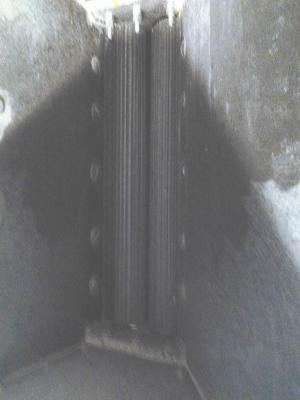 The rollers are mounted on 1-in. shafts that ride in pillow block bearings on an angle iron frame. Brown had to cut one of the mounting flanges off each pillow block in order to mount the rollers close together.