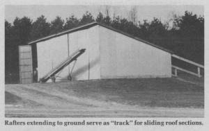 Abe thought there had to be a better way. He found that better way ù a pole shed with a sliding roof to permit a large dump truck to drive inside and dump the load of fertilizer.