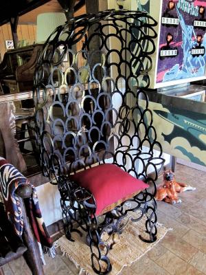 I used a bandsaw to cut some of the horseshoes up. When it was finished I painted the chair black. I’ve also built several other horseshoe chairs for other people in our area. (Dallas Denison, 12138 Faribault Blvd., Dundas, Minn. 55019 ph 507 645-9873)