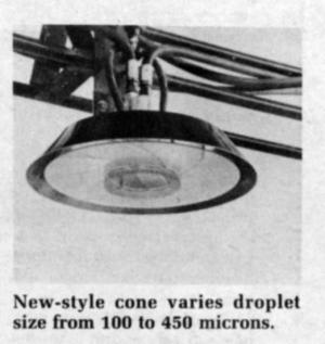 "It provides a uniform umbrella-shaped wall of air that deposits chemicals in an even pattern. It also lets you spray at varying rates from the smallest droplets to conventional 40 gal. per acre rates," says Shepard.