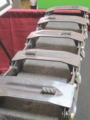 “It has a more aggressive design than conventional over-the-tire steel tracks, which we think will help with traction on snow and ice,” says Wendy Wilkey, Tracks Plus, Columbus, Wis. “We designed them especially for logging work where tree stumps can often cause damage to conventional over-the-tire steel tracks. The studs should help the pads climb over the stumps instead of skidding sideways and getting bent up.