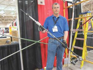 The company offers 2 sizes of KwikPoles – one reaches 12 ft. high and the other 16 ft. “Both poles are made of high tolerance, anodized pneumatic cylinder tubing inside a carbon fiber outer pole. This combination of high quality materials allows you to telescope the pole to its limit without having excessive waggle due to sloppy fitting parts,” says Felton. “Both poles have a solid aluminum collar that houses a spring-loaded, 3/8-in. dia metal pin, allowing the pole to be extended in 6-in. increments. Since the pole’s position is held by the solid 3/8-in. metal pin, the poles can be used as drill extensions in applications where high torque is needed.”