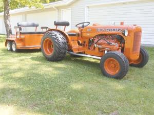 Mini B Powered By Big Flathead V-8 ENGINES Mike Noonan’s Mini B may be small at 36 in tall but it attracts plenty of attention when he starts it up The loud 100 hp 1949 Ford flathead V-8 engine with its dual straight pipe exhaust creates a muscle car sound recognized by folks who were teens in the 1940’s and 50’s Another priority was to use Allis Chalmers parts because they were the tractors used on his grandfather’s farm Named the Mini B after the A-C model B Noonan’s creation is more than an orange tractor with an oversize engine It’s a hybrid of parts Noonan managed to merge to make a working tractor It’s also very short - on purpose Noonan and his friend Larry Wolden were inspired to build mini tractors after meeting Chris Luebke at a Case garden tractor show “I was impressed with one of his project tractors He had chopped the frame and lowered it by about 6 in which allowed the driver to just step over the console to get on instead of climbing over the console ” Noonan says noting that at 73 years old he appreciates that it’s easy to get on and off the tractor He found a 1983 Case 226 garden tractor with a hydraulic drive system and the V-8 engine on Craigslist He cut the tractor frame down 5 in and cut off the front end “I had to build a new front end to accommodate the 600-lb engine I made it out of 1/2-in steel frame and bolted it onto the garden tractor frame and reinforced it ” Noonan says Allis Chalmers B tractors provided many necessary parts for the steering spindles hubs tie rods and wishbone He used the AC grill and welded together two hoods to cover the oversize engine He fabricated fenders from the sheet metal and used the tractor seat Noonan says he wasn’t familiar with hydraulics and was grateful for Luebke’s advice Building the wiring harness and fixing up and adding power steering from a scrapped Yanmar compact tractor also proved to be challenging He also built a custom trailer with a seat for buddies to ride on - with a cooler below the seat for refreshments Contact: FARM SHOW Followup Mike Noonan 1407 Thomas St Marinette Wis 54143 ph 715 732-2994; mnoonan42@gmail com