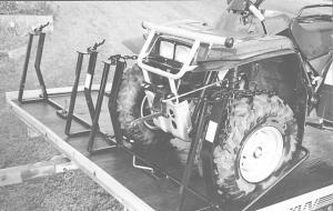The ATV Trailer Vise can be used on ATV's with front-mounted accessories or even 3-wheelers by backing them on," says Zimmerman, noting that the unit is held in place by installing a couple U-bolts through the bed of the trailer or pickup. "It works great for rough terrain. Takes just 30 seconds to hook up. You can easily mount it on a snowmobile trailer by replacing the ski bar with the Trailer Vise."