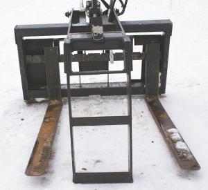 He started with a set of forks and built the grapple out of 1018 mild 1/2-in. steel with 3/8-in. steel tubing on the top bar.