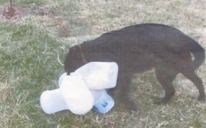 Old Plastic Jugs Used To Make Cheap Doggie Toys
