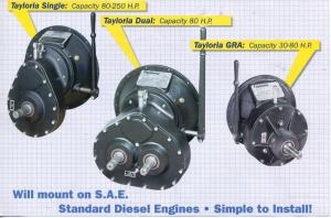 Note: New larger clutch reduction assemblies, 250 to 400 (intermittent hp), fits SAE #1 bell housings and SAE #14-in. flywheels, in both double and triple plate clutches.