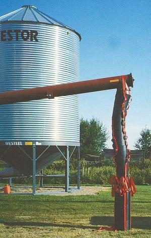 The system consists of four 4-ft. long sections that slide in and out of each other plus 20 sections of flexible spout that attach to the auger. One end of the spout attaches to any auger from 60 to 100 ft. plus long and 10 to 16 in. in dia. and the other end attaches to the hopper on top of the bagger.