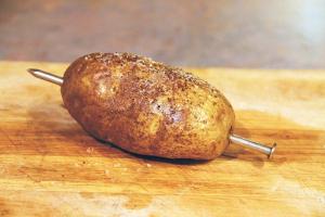 You insert the nail lengthwise into your potatoes before baking. “The nail allows heat to come in from both ends to the center of the potato so it can cook from the inside out. It reduces baking time by up to 50 percent,” says Frechette.