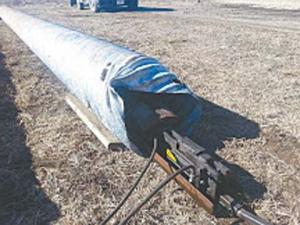 Jacob’s reshaper was originally designed to pick up tractors, but he modified the saddles with pieces of channel iron to fit the shape of common culvert sizes.