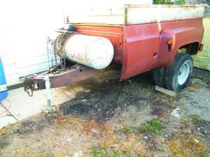 Field Trailer Built From 1-Ton Pickup PICKUPS Miscellaneous Gary Swensen of Yankton S Dak converted an 80-gal propane tank into a high capacity inexpensive portable air supply He mounted the tank on the tongue of a 1-ton 4-WD dual wheeled pickup box that he converted into a field trailer “It comes in handy whenever I need to fill up a low tire anywhere It has enough capacity to air up one truck tire and 2 or 3 implement tires before I have to fill it up again ” says Swensen “I use a big compressor in my shop to fill it ” He made a bracket to hold the tank and uses a 25-ft log chain to hold it in place “The chain serves a dual purpose ” explains Swensen “When using the trailer to haul a load of hay I place a couple of wooden pallets on top of the bales then wrap the chain around them and tighten it down with a binder to keep any bales from falling off ” The trailer is supported by leaf springs that were already on the Chevrolet 1-ton pickup Swensen added 1-ft high wooden sideboards to the bed “I’ve loaded it heaping full of black dirt above the 1-ft sideboards and never had a problem ” he says The trailer has a telescoping ball hitch made from 3 and 3 1/2-in sq tubing By pulling a pin Swensen can adjust the hitch length from 6 to 8 ft To build the trailer he cut the pickup frame off at the motor mounts then folded the front part of the frame together into a “V” shape and welded it back together Swensen has also used the trailer to haul everything from scrap iron to dirt and gravel “The trailer doesn’t have a hoist so to dump the load I have to unhook it and then use a loader tractor to lift the tongue ” he notes Contact: FARM SHOW Followup Gary Swensen 1408 Sunrise Drive Yankton S Dak 57078 ph 605 660-3489; g_swensen@msn com