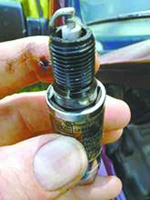Alan Linda, New York Mills, Minn.: “I own a 1997 Chevrolet 1/2-ton pickup equipped with a 305 cu. in. V-8 engine, which was using a lot of oil - about a quart every 600 miles. The photo shows what the no. 7 spark plug looked like every 600 miles or so. I wasn’t driving the pickup much at the time, so replacing the plug that often wasn’t a big problem.
