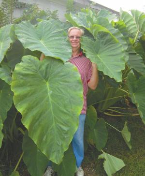 One of DeVroomen’s favorite bulb varieties is “Jack’s Giant” elephant ear, a spectacular display plant from Costa Rica. It was named after DeVroomen by Tony Avent of Plant Delights, who initially propagated the plant in the U.S. Today Jack’s Giant produces leaves up to 2 by 4 ft. in size.<