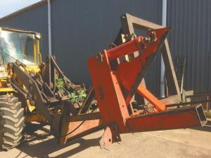 The blade consists of a tough section of bucket blade that pivots closed like a jaw against one side of a heavy piece of steel tubing It will cut through limbs up to 6 in dia and reach up to 17 ft high It mounts securely onto two front bale spears so it’s easy to attach and detach when needed