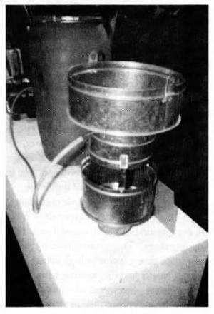 As seed drops into the treater, it spreads out over an inverted cone. At that point the liquid treatment is sprayed onto the seed, coating it evenly as it flows by. A 3/4-hp. electric pump, with a 15 gal. per min. capacity, is used to pump chemical from a chemical drum to the treater at an even rate. It'll treat seed at rates of 900 to 1,100 bu. per hour, depending on the capacity of the auger. Rates can be adjusted by regulating either the chemical pump or the flow of grain from the auger.