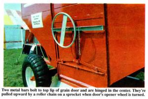 E-Z Lift Door Opener For Gravity Grain Wagons GRAIN HANDLING Wagons (63E) 18-5-39 "My wife always had trouble opening end gates on gravity wagons when she hauled corn. It took too much energy to get them up because of the pressure of corn against the side of the wagon," says Sanborn, Iowa, farmer Sid Jiskoot. "Even the guys at the elevator have problems sometimes."