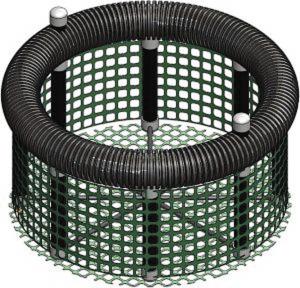 An optional plastic mesh enclosure can be attached to the sides of the towers and under the bottom of the basket, in order to surround the root ball and prevent entry by burrowing animals.