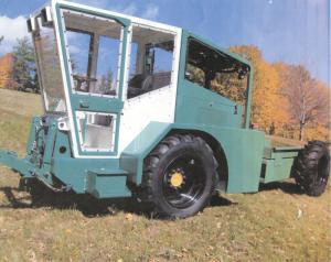 In PRO III, Collins set the cab forward with the engine under and to the rear on the front half of the tractor. That leaves the entire rear half available for use as a flatbed, dump box or log bed.