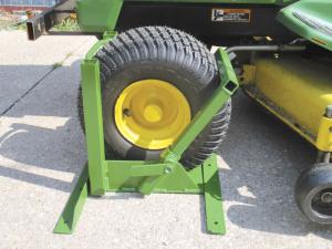 Wheel Clamp Holds Mower On Trailer