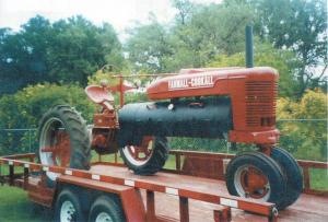 The pipe is welded to angle iron brackets bolted to the C’s transmission and the H’s cowling. “The pipe holds the front and back parts of the tractor together,” says Stracener.