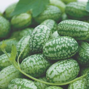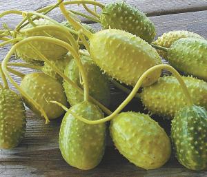 Mexican sour gherkins are native to Mexico and Central America, but are cold and drought tolerant. Start seeds indoors or plant in the ground after danger of frost has past, and use a trellis or wire to get the vines off the ground. The 1-in. dia. fruits start to produce in July and are prolific until frost. Pick when firm and the fruit pulls easily off the vine. They can be pickled, used in stirfry, salsas and salads, or eaten fresh. Not many seed companies carry them but we found them at Park Seed, Johnny Seed and Burpee for about $3 for 30 seeds.