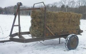 “I use a $79 12-volt winch to pull the bale onto the trailer,” says Wilson. “The winch cable lets me set a hook in a bale up to 40 ft. from the trailer. When the bale gets close, flared sides help line it up on the tilted bed.”
