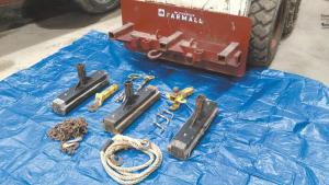 “The self-contained hitch allows us to hook up to and move any trailer or implement, regardless of the type of hitch, pole or tongue on it,” says McLaen. “If we need to push something, we’ve got 3 push bumpers that can be mounted as needed. We’ve lifted and moved implements with tongue weights of 7,000 lbs. using this hitch.”