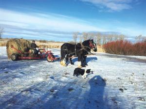 Haying With Horses To Feed 225-Cow Herd LIVESTOCK Beef Wes Lupher keeps his costs in check by making hay with horses It’s also a great way to break in a team says the southwestern Wyoming rancher He uses them to cut and rake his hay and to feed his 225-cow herd each winter He has fed as many as 500 head a day with teams Lupher learned to make hay with horses working with his dad Now he works with his 4 kids doing the same He says farming with horses was a low-cost way to get into the business and contributes to his ability to keep farming with today’s tight margins Lupher’s ranch is at 7 000 ft He acknowledges that very few farmers in that high desert country still work with horses “Horses let me keep my overhead low ” says Lupher “I save my tractor for baling and hauling bales ” Lupher has a 30-ft haybine but he only cut 30 acres with it last year He cut and raked close to 350 acres with horses and mowers “The real heavy hay was too much for the haybine ” says Lupher “I usually mow 75 percent or more of my hay with horses We put up 200 tons last year ” Working with horses requires familiarity with old equipment and a nose for finding it Much of what he sees is worn out and has been left to rust When he does come across a decent horse-drawn rake or mower his interest often sparks the owner’s interest “I asked a fellow if he would part with two #9 McCormick mowers sitting behind his house ” recalls Lupher “He asked what they were and after I showed him he wouldn’t part with them ” He maintains 4 of the classic #9 McCormicks and usually has at least one in the field However his main mowers are 7 and 9-ft I & J mowers with motors and ESM double cutting knife systems Vol 41 No 1 “We still use the #9s quite a bit ” says Lupher “If we can get enough teams we hook up all of them At one time last year we were cutting 33 ft of hay every pass with multiple teams and mowers ” Raking is done with 2 or 3 side delivery rakes and teams of horses and mules He has a large V-rake equipped with a hydraulic hand pump to lift and lower it It takes 3 or 4 horses to pull it Lupher also has a couple of sulky rakes that he uses to help put up 50 to 70 tons of loose hay on his home place After mowing and raking he pushes it into place with a homemade sweep head on an old Farmhand F-11 loader on his tractor “That lets me save the baler for hay that will have to be hauled from remote fields ” says Lupher “I’ve been gathering parts for a horse-drawn buck rake so I don’t have to use the tractor for stacking I’m also putting together a beaverslide stacker to stack hay “Getting good horse-drawn equipment is probably easier today than it was in my dad’s day ” says Lupher citing firms like I & J and others dealing in parts and new equipment He does often have to train his teamsters Lupher taps into friends but notes that he is seeing more people wanting to come and help His work is also attracting horse owners wanting to give their horses some experience When 3 of his mares were raising colts this past year he took in several teams “They are usually pretty nice horses that need a little polish and when you get through making hay even a new team has pretty good polish to it ” says Lupher “They can handle noise and they learn how to stand just by resting after a session pulling the mower ” Lupher prefers Shire horses and keeps 2 experienced teams and a young team as well as 2 teams of mules The horses are used for feeding out hay on Lupher’s home place The mules are used on a remote winter feeding site “They are my tractors that always start ” says Lupher “Last winter we had a stretch of 40 below zero and the mules and I were the only things moving Everyone with a tractor froze up ” Contact: FARM SHOW Followup Wes Lupher Box 364 Mt View Wyo 82939 ph 307 782-3542; weslupher@gmail com