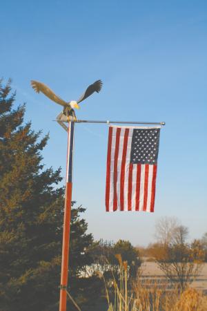 James Fenn, Ransomville, N.Y., was looking at a plow one day and realized he could turn the moldboards into nifty eagle wings. After rounding up a bunch of plow parts, he created a flying bald eagle with a wing span of about 4 ft. It looks like it’s landing on a 12-ft. tall flagpole next to Fenn’s garden.