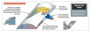 The system uses a specially designed 10-ft. wide by 180-ft. long, polyethylene bag with poly tubes attached to both sides. The tubes are fitted with a row of embedded membranes, allowing forced air to flow into the bag from one side and go through the bag to exit the other side.