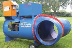 “Because air flows in a cross direction through the bag, you can use an actual fan instead of a centrifugal fan which results in a higher air flow. The in-flow poly tubes are black, which increases the air temperature inside the tubes by up to 2 degrees. Heat from the diesel engine passes through a heat exchanger, so exhaust fumes won’t contaminate the grain. We also offer the option of using a gas engine-driven fan.”