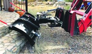 Loader-Mounted “Tilt Plow” For Compact Tractors TRACTORS Loaders This prototype “Tilt Plow” for compact tractors lets you use the tilt function on any front-end loader to change the angle of a front-mounted snowplow “Most compact loader tractors don’t have the hydraulics needed to adjust the angle of a front-mounted plow You have to either get off the tractor and pull a pin to manually reposition the plow or add to the hydraulic system which is very expensive ” says inventor Steven Chalmers Castle Rock Colo “With our patent pending ‘Tilt Plow’ changing the plow angle is as easy as tilting the loader forward and backward You tilt the loader forward to move a control arm to a different control point and tilt it backward to pull on the control point which rotates the plow accordingly ” Chalmers designed the Tilt Plow for his Kioti-40 hp tractor and has tested it on a 6-ft plow Since the Tilt Plow is operated in float mode he equipped the plow with a tail wheel to support the trailing end of the plow The Tilt Plow hooks up to the loader’s quick-tach system It comes with a short steel rod attached to a universal joint and a large horizontal plate with 3 slots that attaches on back of the plow The slots in the plate determine whether the plow angles to the left or right or straight ahead “If you need to lift the loader the plow’s angle will still be maintained ” says Chalmers A secondary benefit of the Tilt Plow is that it acts as its own carriage pivoting on the loader which allows it to follow the contour of the plowing surface better than a rigidly mounted blade Chalmers says the Tilt Plow could also be designed to clamp onto a bucket He is looking for a manufacturer Contact: FARM SHOW Followup Steven Chalmers 4829 N Mesa Drive Castle Rock Colo 80108 ph toll-free 833 278-2787 or 303 981-9879; steven@chalmersinnovations com You can watch a video of the Tilt Plow on YouTube at: https://chalmersinnovations com/pages/tiltplow
