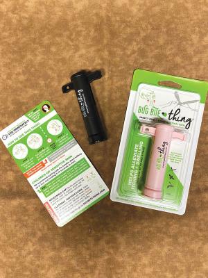 The idea is that the Bug Bite Thing pulls out venom and saliva, and it seems to work if you use it immediately after getting bit. I used it on a couple of mosquito bites I’d gotten earlier, but they still itched. Directions suggest using it within a couple of minutes of being bit. They also warn not to use it on the face or neck because it leaves a red mark, and those areas are more sensitive. You should also reduce the suction time and pressure on young children.