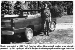 Dozler, who is a member of the Electric Auto Association (2710 St. Giles Lane, Mountain View, Calif. 94040), found a 1981 Ford Courier with a blown 4-cyl. engine. He bought the truck, which had more than 150,000 miles on it, for $500 from an area auto dealer. He started converting the truck last fall and had it on the road by spring, running 100% on electricity.