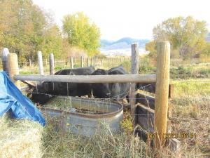We braced a post tightly across the top of the trough to reinforce it so the bulls couldn’t mash it down when leaning into the trough to eat. We also put a pole along the bottom of the water trough to make sure it didn’t get damaged and caved in by the bulls’ hooves.