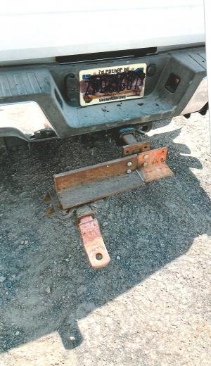 Jesse Barley of Tyrone, Penn., built a custom hitch to make it easier to navigate roads with farm equipment. “When moving my New Holland 489 haybine down the road to different hay fields, it always stuck so far out to the right side of the truck I was worried about catching guard rails or rocks on the side of the road,” he says. Barley designed a hitch that goes in the receiver to move it about 16 in. to the left. “It really helps to keep the outside wheel on the road more.”