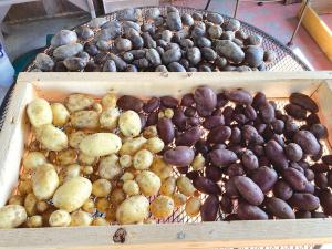 “My wife and I ended up with those three, as well as Baby Red, another bright red tuber inside and out, and the size of golf balls. We also grew Purple Majesty and Purple Viking, the former a dark purple throughout and the latter with reddish-purple skin and white flesh.