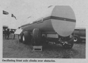 The front axle oscillates so there's no twisting of the tank in going over ruts, ditches or obstructions. It's available on Manumit's 4,500 gal. manure tank, and, on special order, the company's 3,300 gal. tank. The optional front axle adds about $2,000 (Canadian dollars) to the cost of a 4,500 gal. tank.