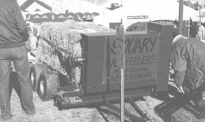 "Our revolutionary tandem axle, self-loading big square bale feeder is ground-driven so you can pull it with an ATV or garden tractor. It uses a winch to load a big rectangular bale and feeds it out through a side delivery conveyor," says Mark Stewart of Te Kauwhata in New Zealand.