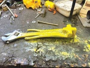 The process was simple. “I cut metal to fit the patterns on barrel bungs, then welded and ground it for the final fit.” All he needed was an extra adjustable wrench and scrap metal already lying around. “It works as well as planned,” he says. “I wouldn’t do anything differently.”