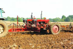 Power Units Boost Tractor Power ATV S Sam Hill and Justin Dennis designed the Denhill Twin-Pull for seasonal high horsepower needs The auxiliary power pack consists of tandem 64-hp engines and rear ends It hooks up to a conventional tractor drawbar increasing the horsepower available to pull implements by 128 hp Hill a Norfolk U K farmer and Dennis a Norfolk civil engineer developed their prototype as an alternative to ever larger and more expensive tractors Freelance writer Chris Lockwood detailed their efforts in an extensive article in the December 2023 issue of Classic Tractor “Our goal was to make better use of available tractors without investing in expensive horsepower only needed for limited periods ” says Hill It’s a challenge the two have been working on for several years Their first attempt involved joining two crawler tractors together with a tow chain The operator sat on the one in the rear and controlled the steering clutch and throttle of both Their next attempt involved a tractor that sat on the front linkage of a second tractor The idea was to pick the first tractor up when turning but it proved too heavy The Denhill Twin-Pull was their most successful attempt yet They invested 200 hrs of time to harness the two David Brown 995 skid units repurposed from David Brown-based Sands forward control sprayers The skid units mount side-by-side in a heavy-duty frame that measures 23 1/2 ft from the lead tractor drawbar to the implement drawbar The 5 by 12-in I-beam at the center of the frame has an 88-in rear cross member and a 108-in front cross member The Twin-Pull weighs in at about 8 000 lbs with about 2 000 lbs resting on the lead tractor’s drawbar It measures 12 ft side to side The Twin-Pull’s wheels are set to straddle the lead tractor’s tracks This ensures each of the drive wheels gets undisturbed ground to bite into and spreads the weight out notes Hill Preparing for field work involves manually selecting gears in the Twin-Pull transmissions Stops on the throttles are set for idle and working speeds When the operator is ready to start tillage clutches and throttles are engaged remotely with spool valves At headlands clutches are disengaged as the implement is lifted out of the soil A key safety component of the frame is the sliding drawbar that connects the Twin-Pull to its lead tractor If the power pack starts to move up on the tractor tension on cables that control the throttles is reduced and the power pack backs off This past summer it was demonstrated at several field days In September Hill used it behind his 154-hp 1988 Ford TW-25 the lead tractor at a local plowing day It was the first time it had been put to the test “We didn’t use the full power of either the Twin-Pull or the lead tractor as the discs we were pulling didn’t require it ” says Hill “We wanted to use the Twin-Pull as much as possible to prove the contribution it could make Had the load been greater the combination of units would have met the challenge and driving would actually have been easier ” Hill acknowledges that the prototype is very much proof of concept and was done at a low cost He recognizes it could be significantly improved To date no one has stepped forward to do so “We used what we had ” says Hill “If I built another version it would be much larger at least 200 hp Engine throttles would be paired and controlled electronically from the cab I would replace the sliding drawbar with a kill switch in the cab and the I-beam with a box beam This would shorten the overall length which would help on headland turns ” Contact: FARM SHOW Followup Sam Hill Barn Owl Farm Rush Green Barnham Broom Norwich Norfolk United Kingdom NR9 4EA ph 44 788 178 6690; samghill536@gmail com