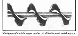 Replacement bristle augers are now available to replace the steel flighting and shaft in most sizes of conventional augers, says Max Montgomery, Kenton, Ohio, who invented the bristle auger and used one for three years on his own farm before going public.