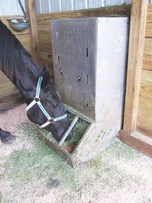 “Some horses are really picky,” Kuhns says. “Given unlimited access to hay, they’ll pick through it for the pieces they want, leaving a mess on the ground. If you restrict their access, they’ll eat more.”