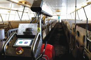 The unit uses 3.95 to 4.76 gpm of water between 2,610 and 3,200 psi. Magnets are placed along the stalls for guidance, and connected routines are created once and stored locally and in the cloud. They’re easily adapted for different pen sizes and shapes.