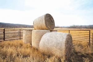The amount of wrap needed is similar to that of plastic, about 2 1/4 turns for hay and 3 1/4 turns for straw. If bales are used within a year, they can be stacked in the typical pyramid shape. However, Ruud recommends mushroom stacking if they’re to be stored longer so the net wrap doesn’t touch the ground.