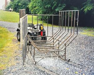 “It would’ve been very difficult to put four 45-degree bends in a 14-ft. pipe and have them all in line,” says Freeman. “Instead, I drew a square on the floor and laid two 7-ft. pipes down inside it, so they overlapped and then welded them together.”
