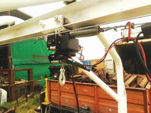 To raise and lower the payload, Surber installed a 3,500-lb. electric winch along with an old boat winch. He widened and split the drum to pay out and take up the cable for moving the hoist winch.