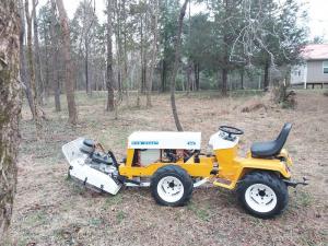The tiller was designed to mount to the back of a small Allis-Chalmers garden tractor. Bayer adapted it for “Artie,” his 4-WD articulated Cub.