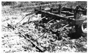 It consists of a solid steel 3-in. square bar towed behind his Kewanee chisel plow by chains. He got the bar off a junked Oliver planter.