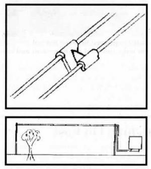 The idea is simple and many other people have probably tried it. What Tinsley Beck did was to run strands of ordinary electric fence wire up over fruit trees, buildings and crops that he wanted to protect from birds. The problem with the idea is that if you just run a single "hot wire", the birds won't feel a thing because they won't be grounded. What Beck did was to run two wires close togther, one of them hot and the other one grounded. They're so close together - less than an inch apart - that when a bird lands, their feet hit both wires and they get zapped.